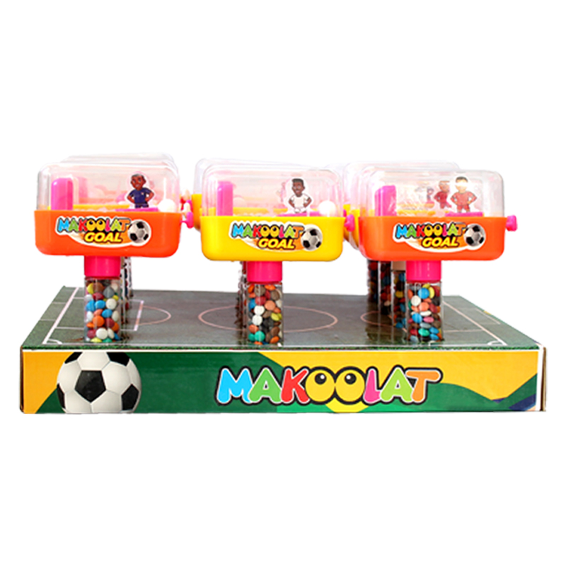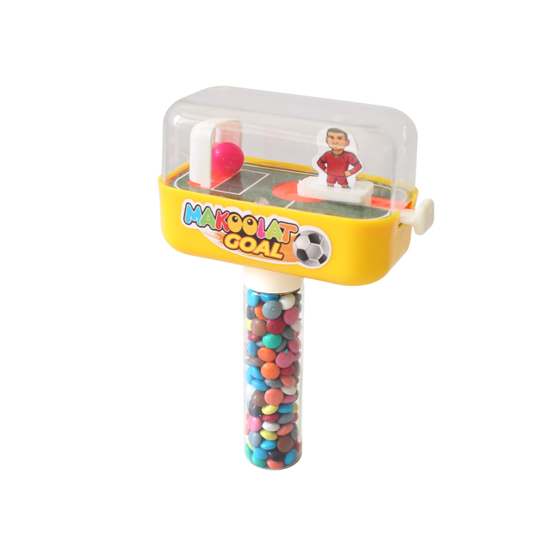- نوع محصول: ماکولات فوتبالی لوله ای آدمک دار ، به صورت مکانیکی عمل میکند به این صورت که با کشیدن اهرم جانبی آن و قراردادن توپ در مرکز زمین بازی با زدن ضربه پنالتی توپ را درون دروازه جای می دهید.